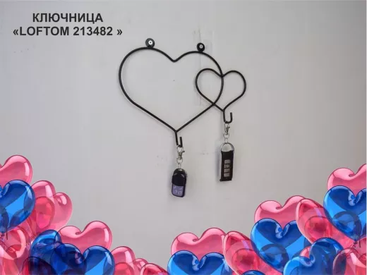 Ключница с магнитиком для записки, вешалка в прихожую, два сердца, чёрный "ABILOVE 213482"