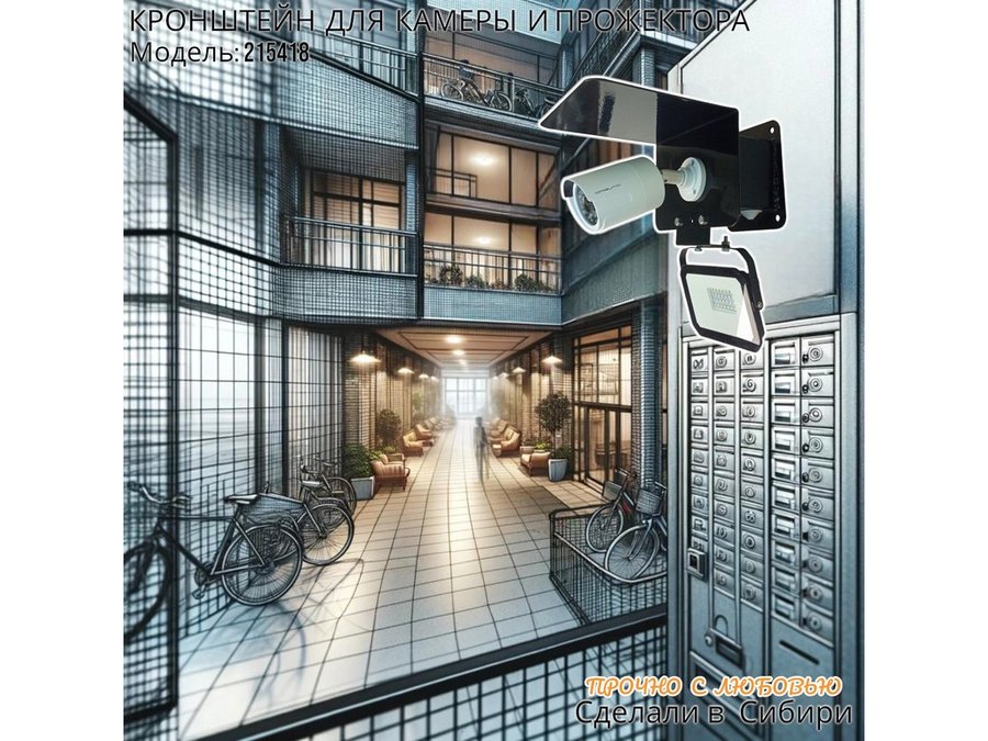 Современное надёжное решение для монтажа видеокамеры и прожектора на стену здания.