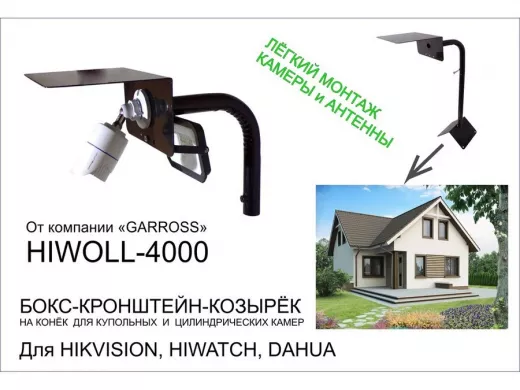 - Кронштейн с козырьком предназначен для крепления видеокамер и защиты их от дождя, снега и солнца.