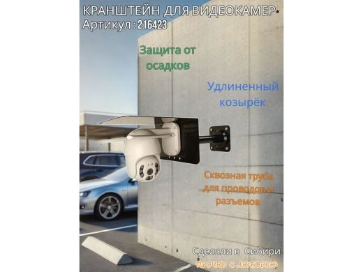 Кронштейн для поворотной камеры с вылетом 25см и большим козырьком "HIWOLL-216423" черный, сталь