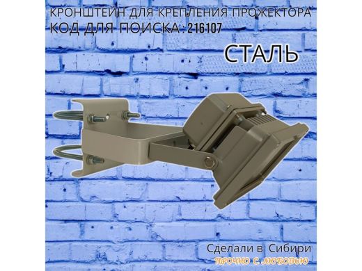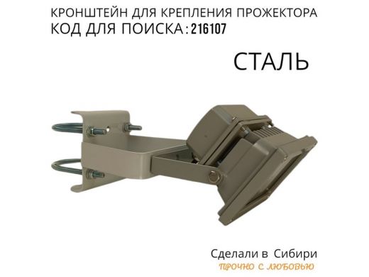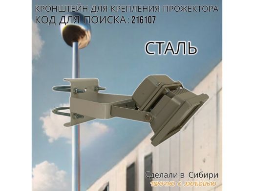 Кронштейн усиленный для крепления прожектора на трубе до 51мм "ПРОЖЕКРЕП-216107" сталь, цвет серый