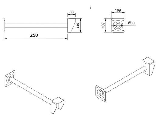 - Для крепления используются четыре отверстия в основании кронштейна.
