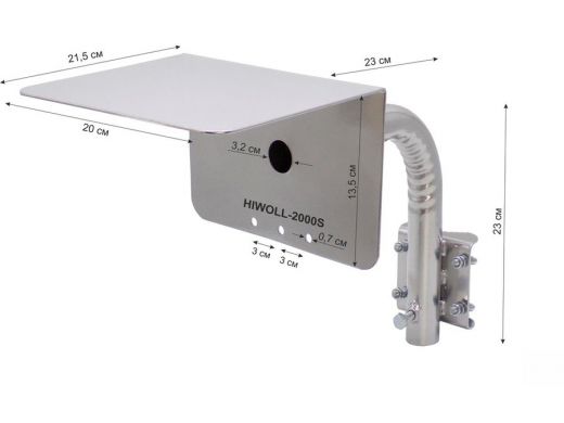 Кронштейн "HIWOLL-2000S-201358" серебристый с хомутами и козырьком на мачту для камеры и прожектора