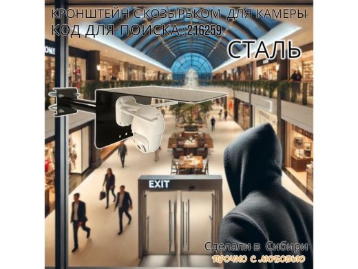 - Универсальный кронштейн с козырьком предназначен для крепления поворотной или цилиндрической камеры и прожектора на трубу.
