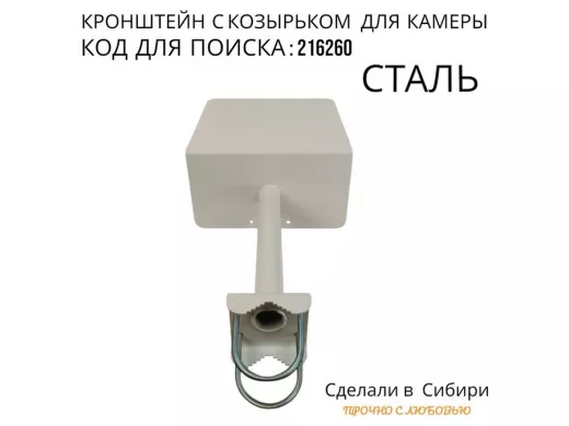 - Универсальный кронштейн с козырьком предназначен для крепления поворотной или цилиндрической камеры и прожектора на трубу.