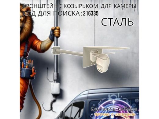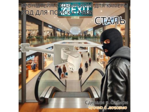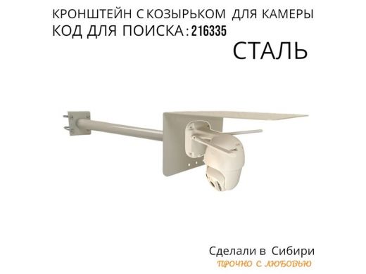 Кронштейн с козырьком для видеокамеры на трубу 15...51мм вылет 50см 24х22см "HIWOLL-216335" серый