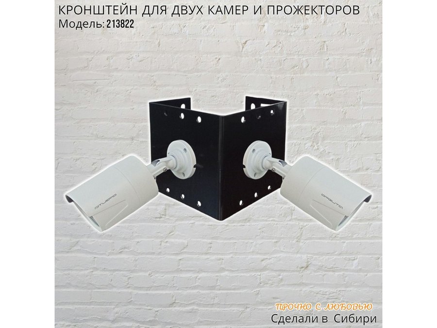 - Кронштейн для двух камер и прожектора, крепится при помощи СИП ленты монтажной на квадратный или круглый столб.