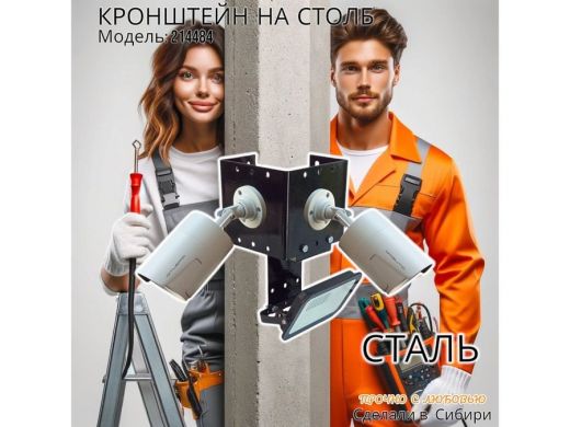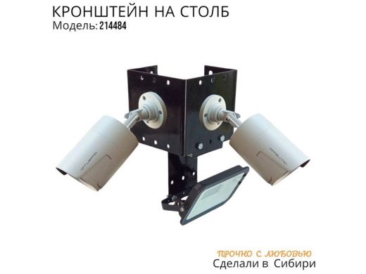 - Кронштейн для двух камер и прожектора, крепится при помощи СИП ленты монтажной на квадратный или круглый столб.