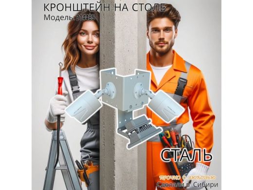 - Кронштейн позволяет быстро зафиксировать камеры видеонаблюдения или прожектор на столбе, не сверля его.