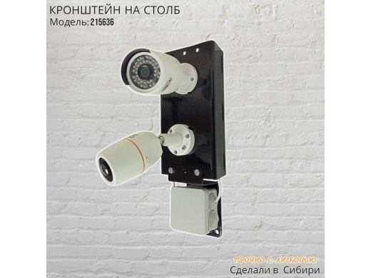 Кронштейн для двух камер и прожектора на столб с пластиной для гермокоробки черный IPAHD-5-215636