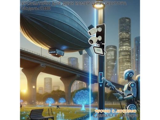 Кронштейн для двух камер на столб с пластиной под прожектор "IPAHD-5-214482" прочная сталь, черный