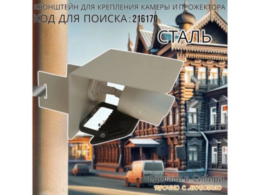 Кронштейн для камеры и прожектора на столб с козырьком "IPAHD-216170" серый, под СИП-ленту или хомут