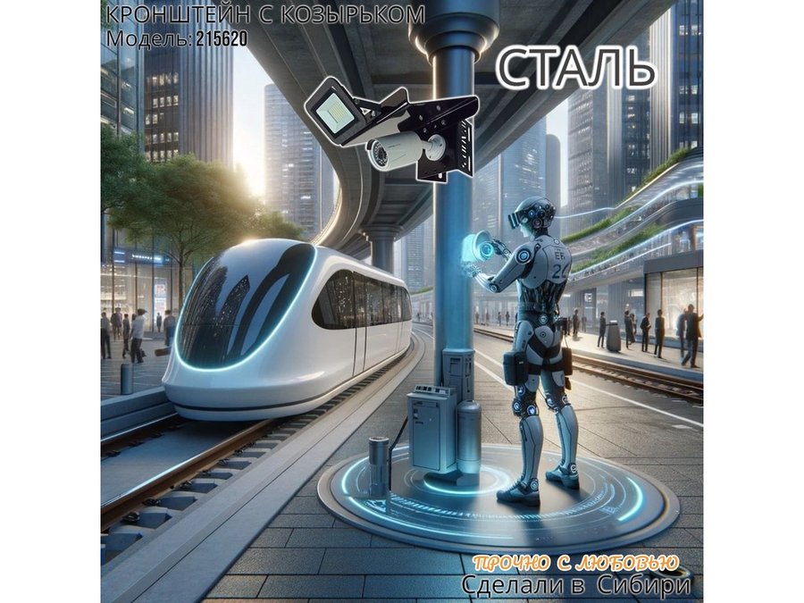 - Кронштейн позволяет быстро зафиксировать камеру и прожектор на столбе, не сверля его.