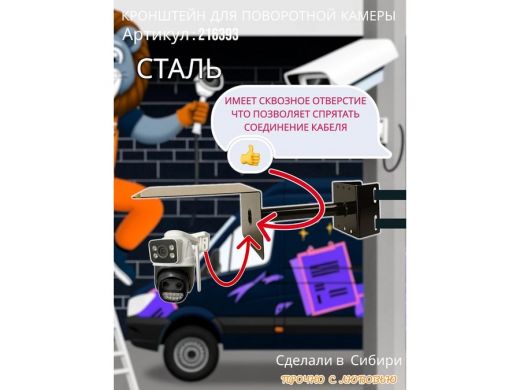 - Стальной кронштейн позволяет вынести камеру от столба на 25 см.