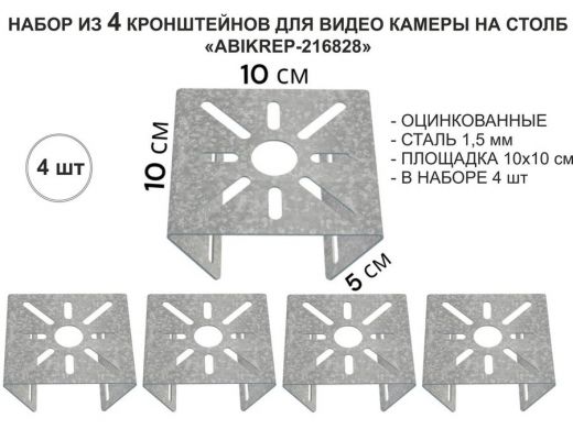 Набор 4 шт. Кронштейн оцинкованный для камеры на столб "ABIKREP-216828" 100х104мм,сталь, под хомуты