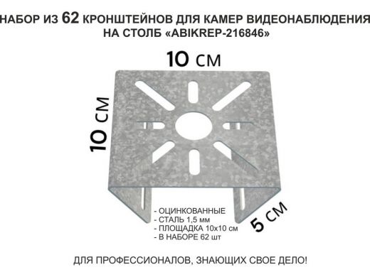 Набор 62 шт. Кронштейн оцинкованный для камеры на столб "ABIKREP-216846" 100х104мм, сталь,под хомуты