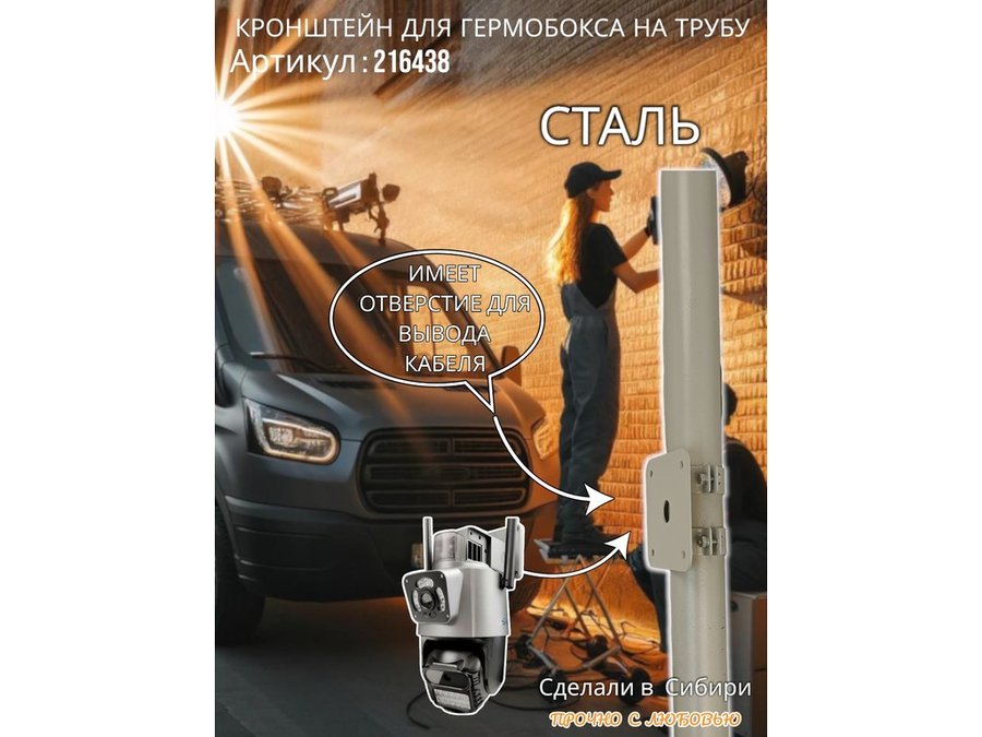 - Кронштейн позволяет быстро зафиксировать гермобокс с видеокамерой на трубу.