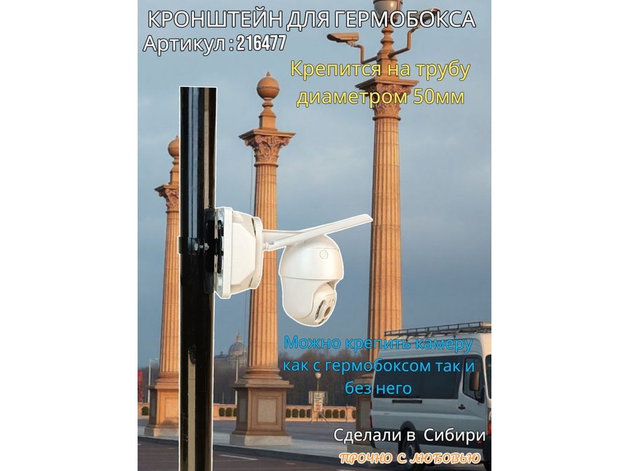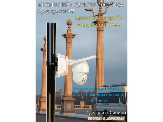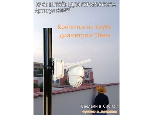 Кронштейн позволяет быстро зафиксировать гермобокс с видеокамерой на трубу.