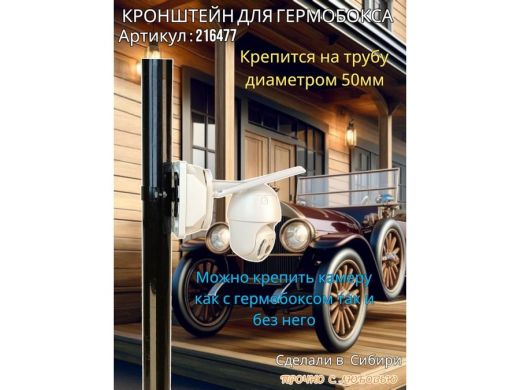 Универсальный усиленный кронштейн предназначен для крепления гермобоксов,коробок с видеокамерой, дорожных знаков , электрических щитков на трубе диаметром 50мм.