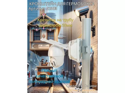 - Универсальный усиленный кронштейн предназначен для крепления гермобоксов,коробок с видеокамерой, дорожных знаков ,электрощитков на трубе диаметром 50мм.