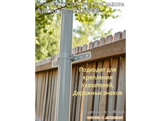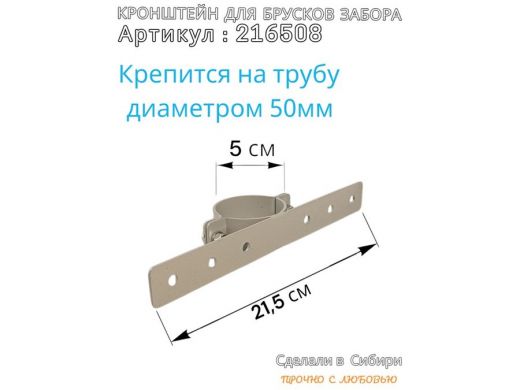 Кронштейн для крепления брусков забора на трубу диаметром 50мм "PODPORA-216508" сталь, цвет серый