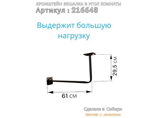 Кронштейн для плечиков с одеждой, вешалка в угол комнаты 60 х 29 см "ПРОСЕКИНО 216643" чёрный, 22мм