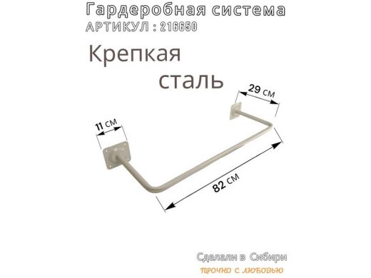Кронштейн для плечиков с одеждой, вешалка к стене 82 х 29 см "ПРОСЕКИНО 216650" серый, 22мм