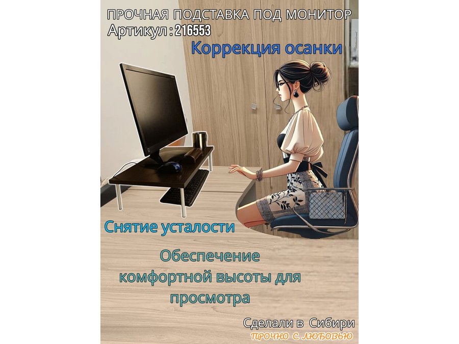 - Универсальная подставка для монитора имеет лаконичный и стильный дизайн, идеально подойдет для любого интерьера.