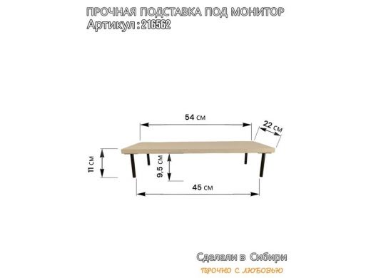 Подставка под монитор на стол 54х22см высота 11см, сосна выбеленная "ABBIKUS-216562" черные ножки
