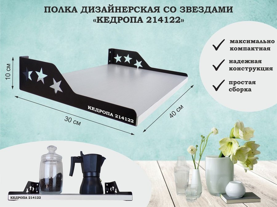 В корзину Купить в 1 клик Полка для микроволновки со звездами "КЕДРОПА-213916" размер 60х30х8 см, венге