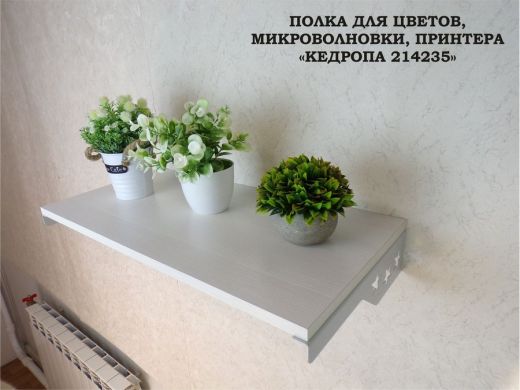 Полка предназначена для гостиной (можно разместить цветы, сувениры, фотографии), для коридора (под ключи, шапки, шарфы и перчатки), для детской (под рисунки, поделки, книги), для кухни (под микроволновку, чайник, посуду) и др.