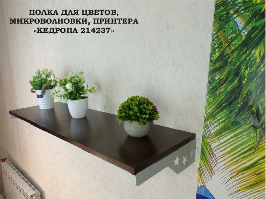 Полка предназначена для гостиной (можно разместить цветы, сувениры, фотографии), для коридора (под ключи, шапки, шарфы и перчатки), для детской (под рисунки, поделки, книги), для кухни (под микроволновку, чайник, посуду) и др.