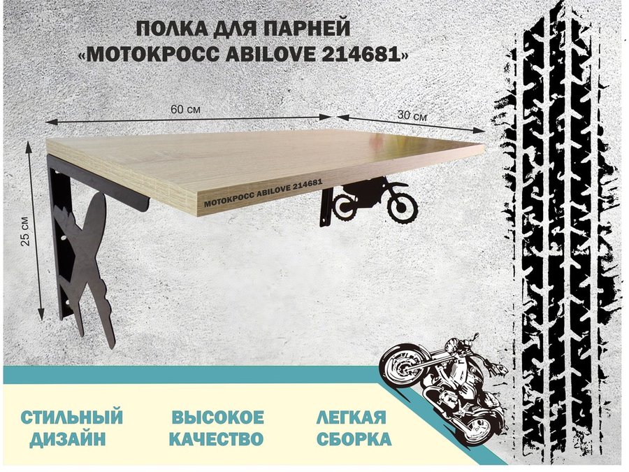 В корзину Купить в 1 клик Полка для парней "МОТОКРОСС ABILOVE-214681" для кубков и аксессуаров, дуб сонома, 30х60см