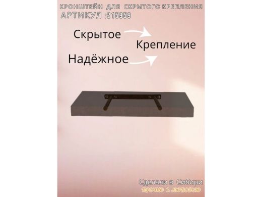 - Кронштейн предназначен для скрытого крепления полок, изготовленных из различных материалов: МДФ, ДСП, дерево, пластик.