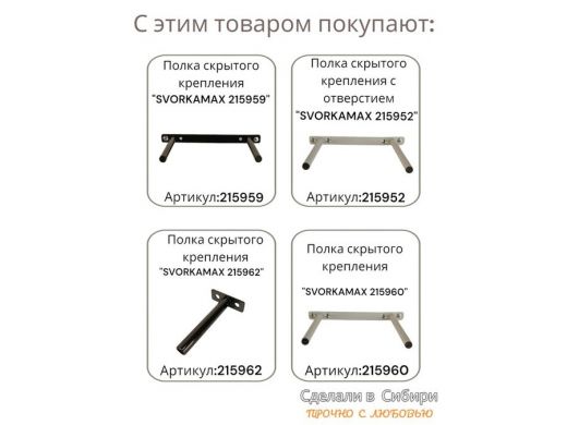 Кронштейн 1 шт для полок скрытого крепления, длина 150 мм с 5отверст. "SVORKAMAX-18736" 12мм, черный