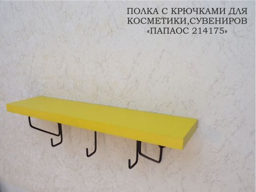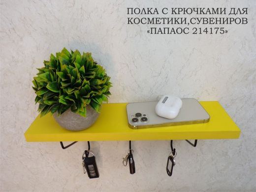 Ключница, полка с крючками в прихожую 40х10 см, высота 9 см, черный "ПАПАОС 214175" желтый