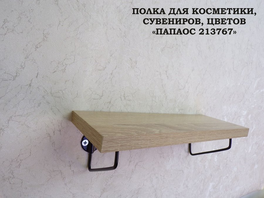Полка для косметики, сувениров, цветов, 30х10 см, высота 9 см, черный "ПАПАОС 213767" дуб сонома