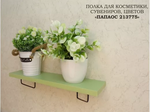 Полка для косметики, сувениров, цветов, 40х10 см, высота 9 см, черный "ПАПАОС 213775" салатовый