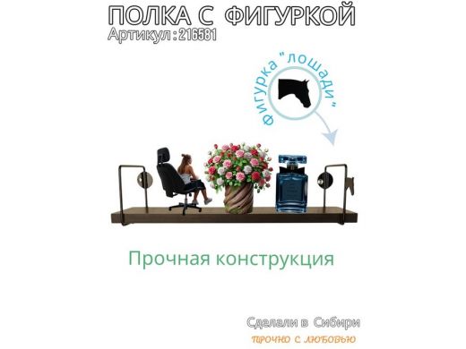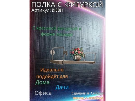 Полка с фигуркой лошади "ABILOVE-216581" размер 10х40см ,черный ,венге