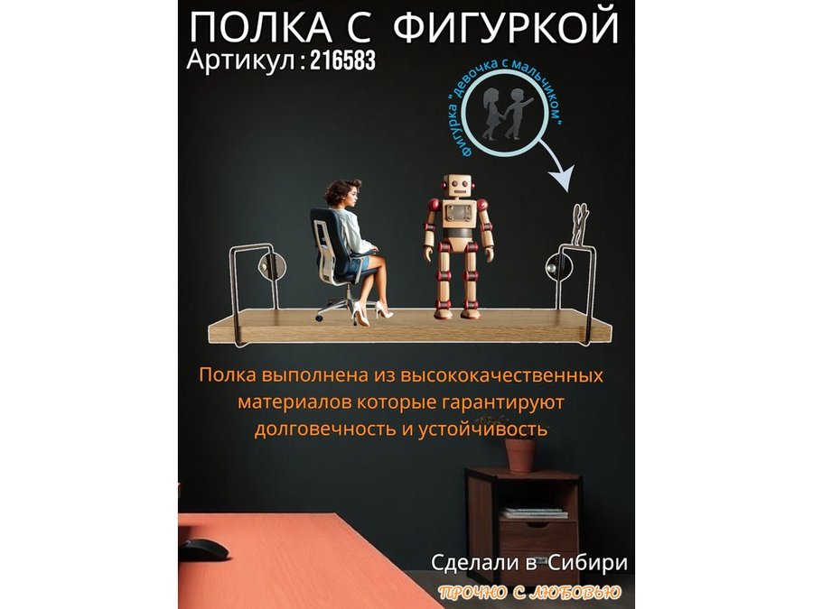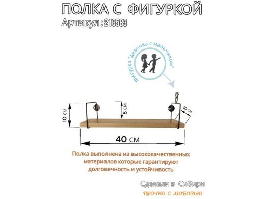 Полка с фигуркой девочки с мальчиком "ABILOVE-216583" размер 10х40см ,черный ,дуб сонома