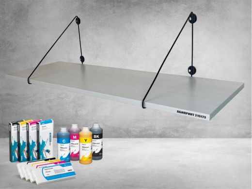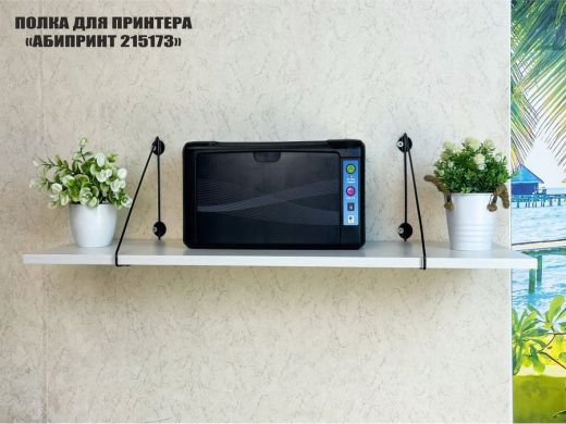 - Полка надежно крепится к стене при помощи анкеров или шурупов с дюбелями, на ней можно разместить принтер, бумагу