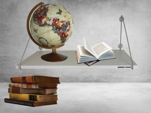 Полка для книг "КНИГОКРЕП 215032" высота 26 см размер 60х30 см серый и белый шагрень