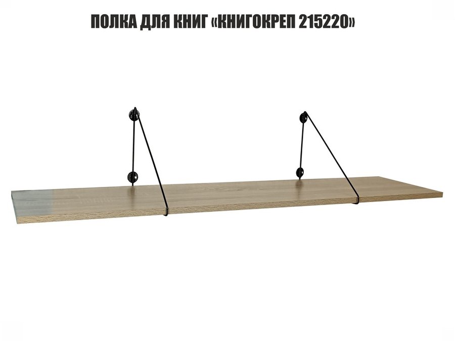 Полка для книг "КНИГОКРЕП 215220" высота 26 см размер 120х30 см черный и дуб сонома