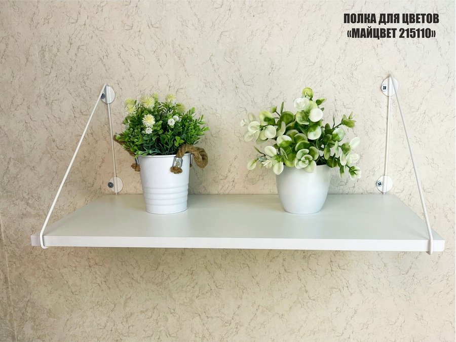 Полка выдержит тяжелые цветочные горшки с растениями, фоторамки, книги, сувениры и много другое.