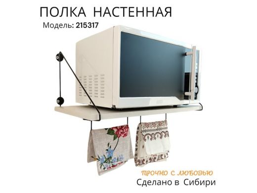 Полка для микроволновки "ПАПАОС 215317" размер 60х30 см черный и сосна выбеленная с держателями