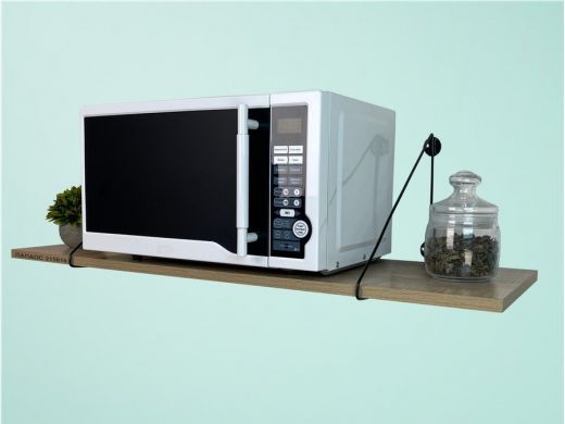 Полка для микроволновки "ПАПАОС 215016" высота 26 см размер 90х30 см черный и дуб сонома