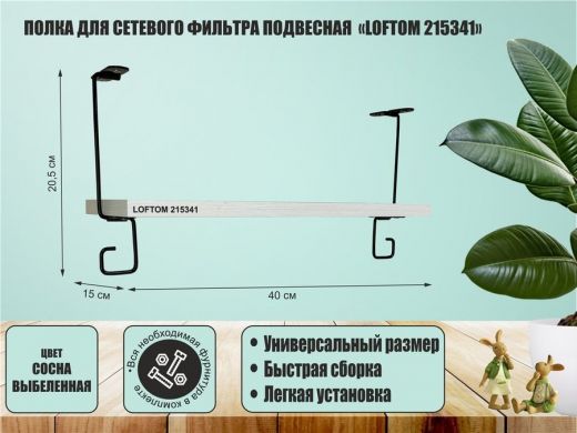 Полка для сетевого фильтра подвесная "LOFTOM 215341" 15х40см сосна выбеленная, с креплением шнура