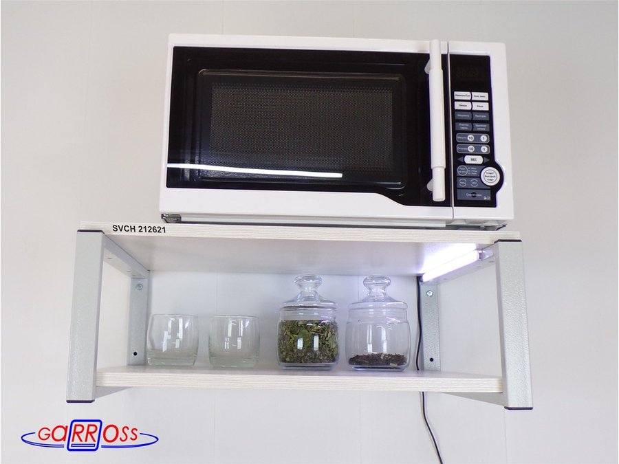 Кронштейн для микроволновки с подсветкой, 21см серый "ПолкаКрепка-212621"две полки 35х54см, сосна