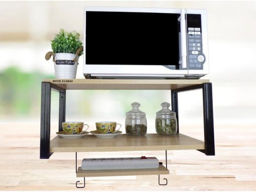 - На верхней полке можно разместить микроволновую печь или другую кухонную технику, на средней отлично "встанет" посуда, баночки под сыпучее и многое другое, а нижняя полка отлично подойдет для специй, таймера или маленьких сувениров