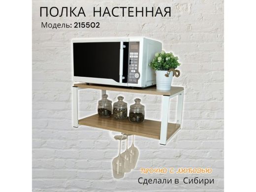 Полка c одним бокалодержателем для микроволновки "SVCH 215502" 60х30см, белая, дуб сонома